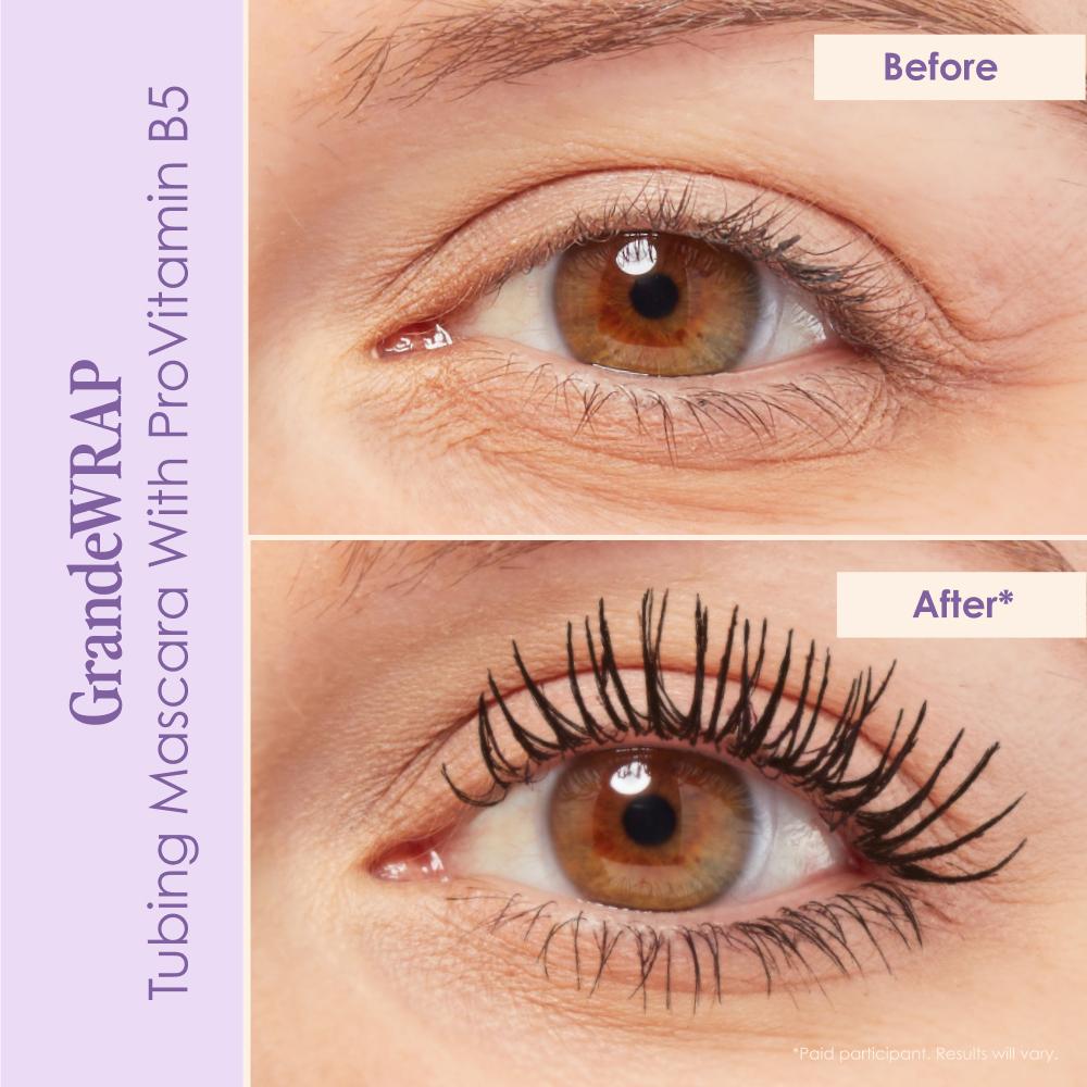 GrandeWRAP 8ML: Meet the tubing mascara that goes to great lengths & stays put from day to night. Formulated with anti-smudge tubing polymers, it wraps each lash & locks them in for a defined, lifted & extended look. Infused with decadent Mango Butter & ProVitamin B5, this lash-loving formula provides lightweight nourishment for deep conditioning & healthier looking lashes.