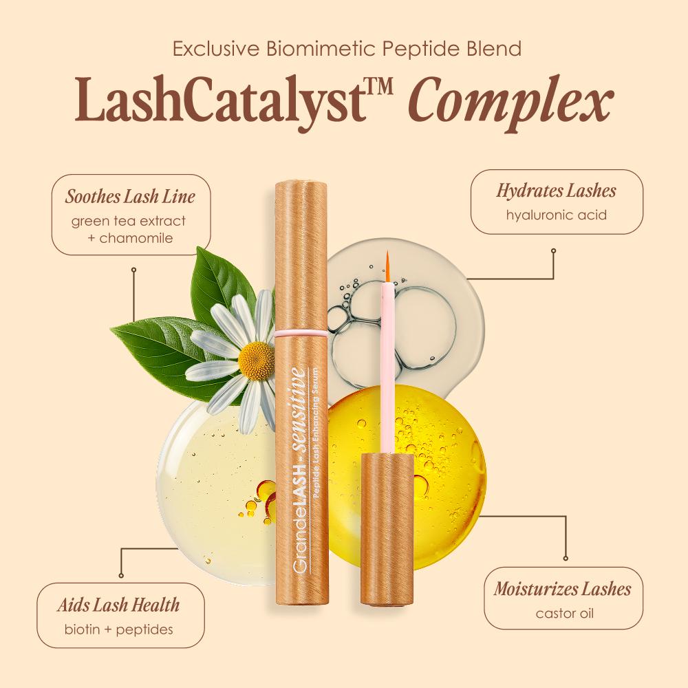 The gentle lash serum that doesn’t compromise on results. Developed for sensitive eyes by the #1 Lash & Brow Serum Brand in America*, GrandeLASH-Sensitive delivers visibly thicker, longer-looking lashes with less lash fall out in just 6 weeks. Powered by the LashCatalyst™ Peptide Complex and calming botanicals, it nourishes the delicate lash line for stronger, healthier-looking lashes.